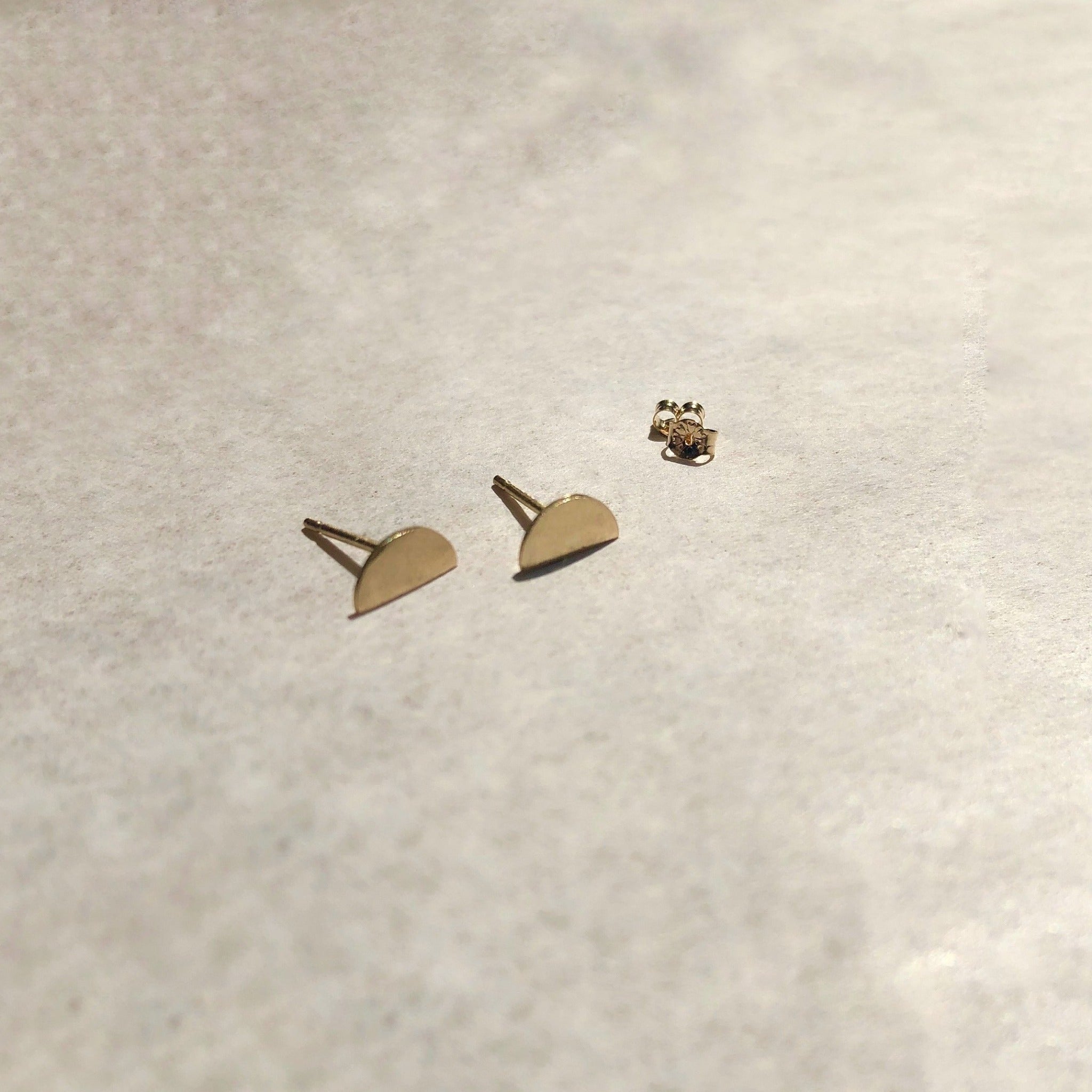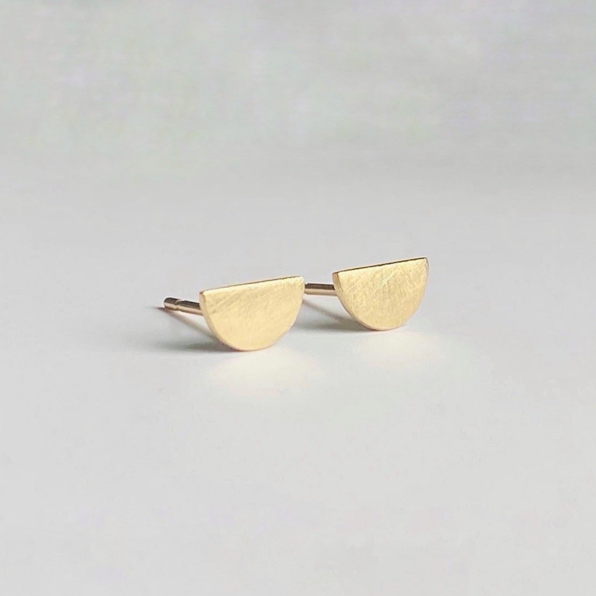 Small moon shaped studs handmade in gold make the perfect minimalist stud for everyday wear.