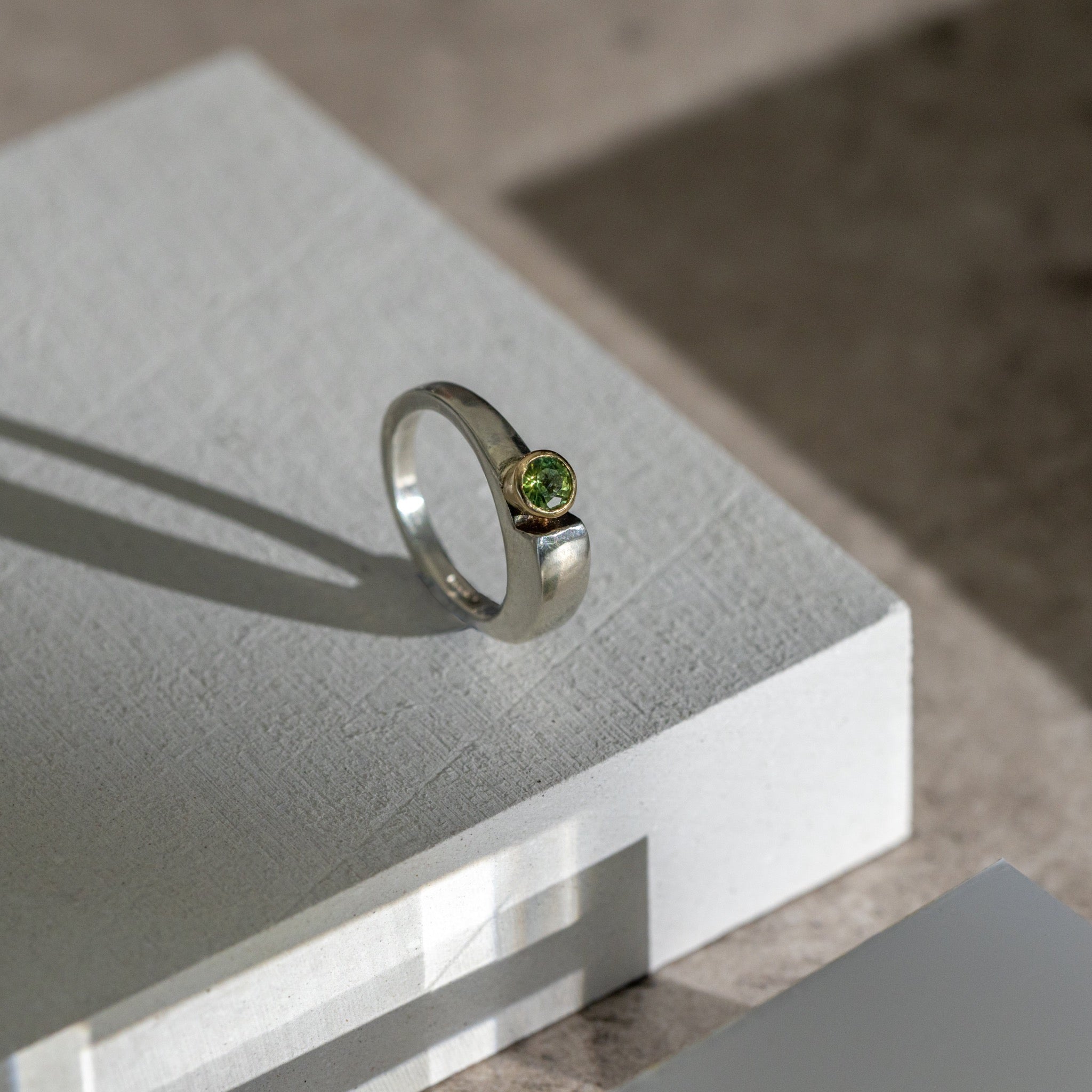 Zoom Green Sapphire Ring in Yellow Gold and Silver