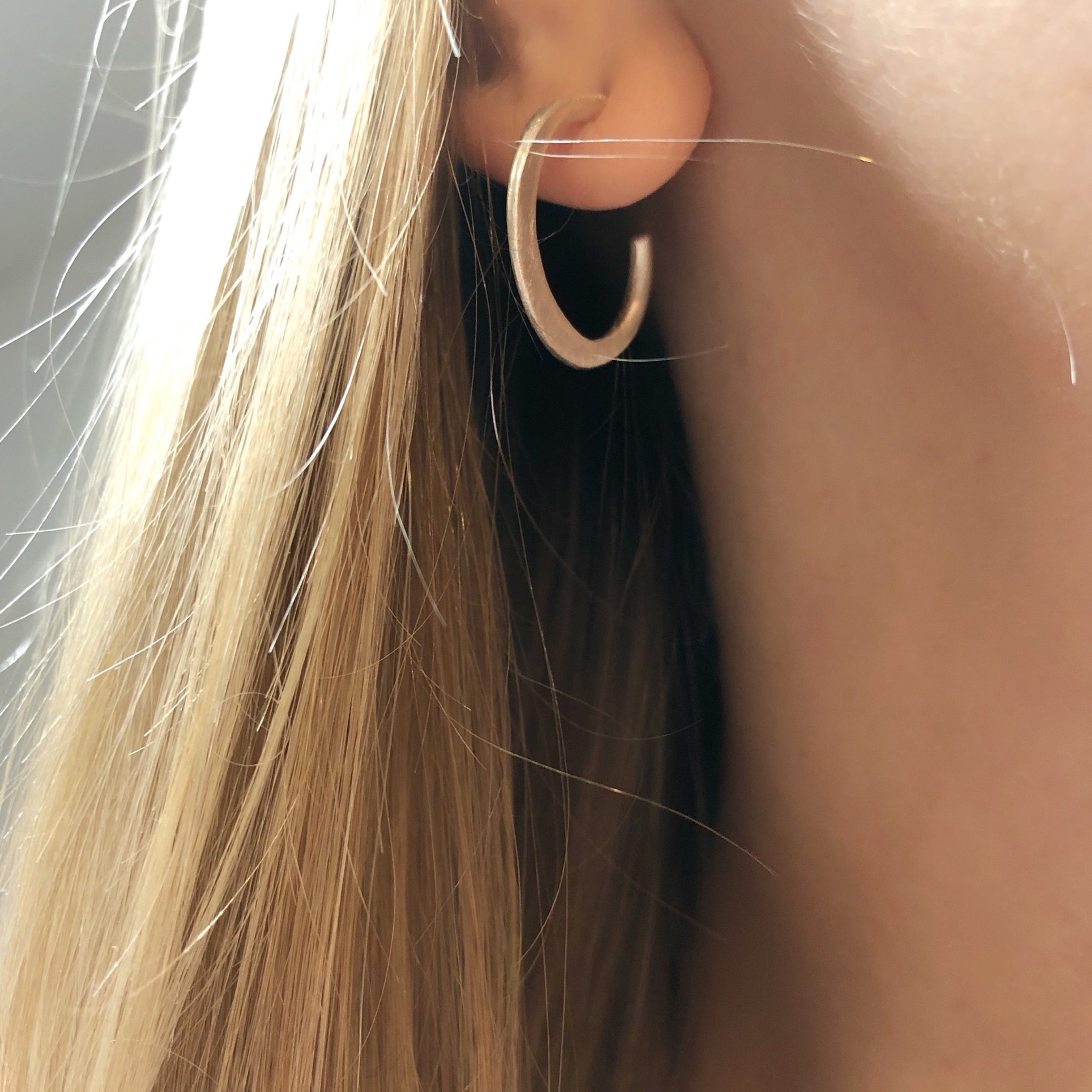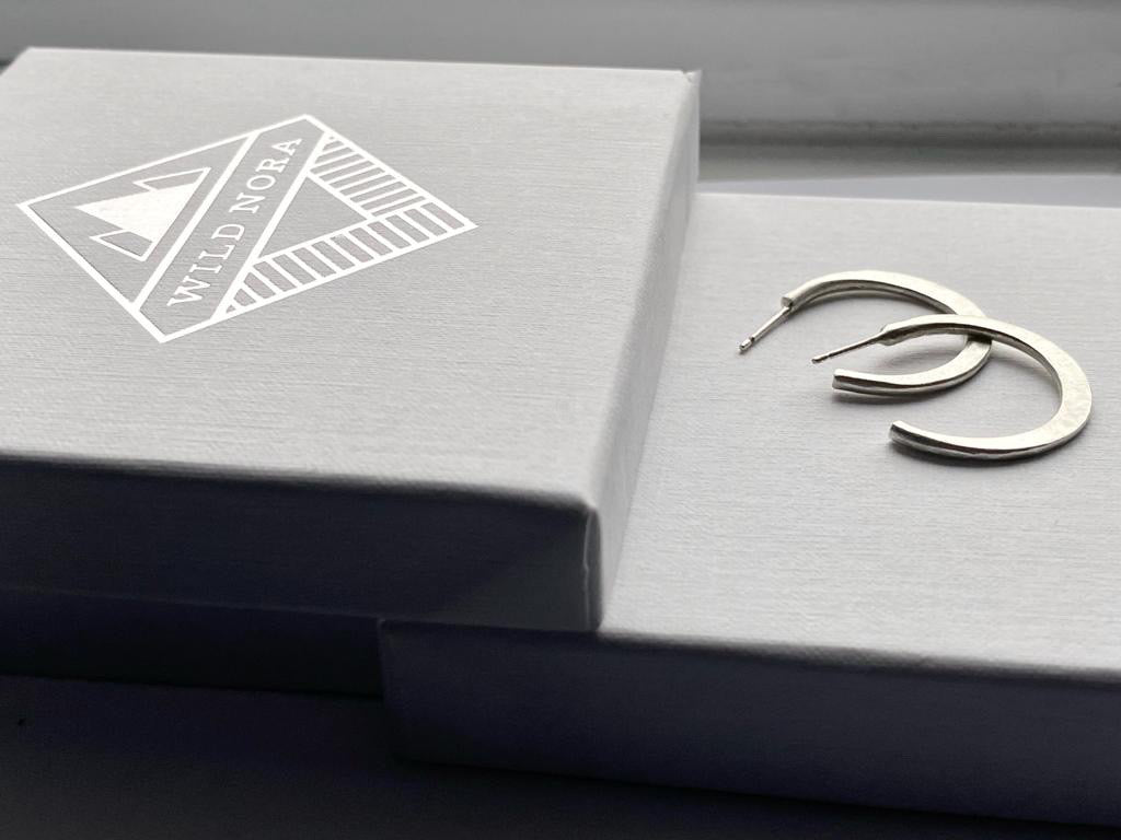 Handmade silver hoop earrings in sterling silver, with a slightly wider profile through the middle of the hoop. Lightweight and easy to wear these lovely hoops have been given a satin brushed finish.